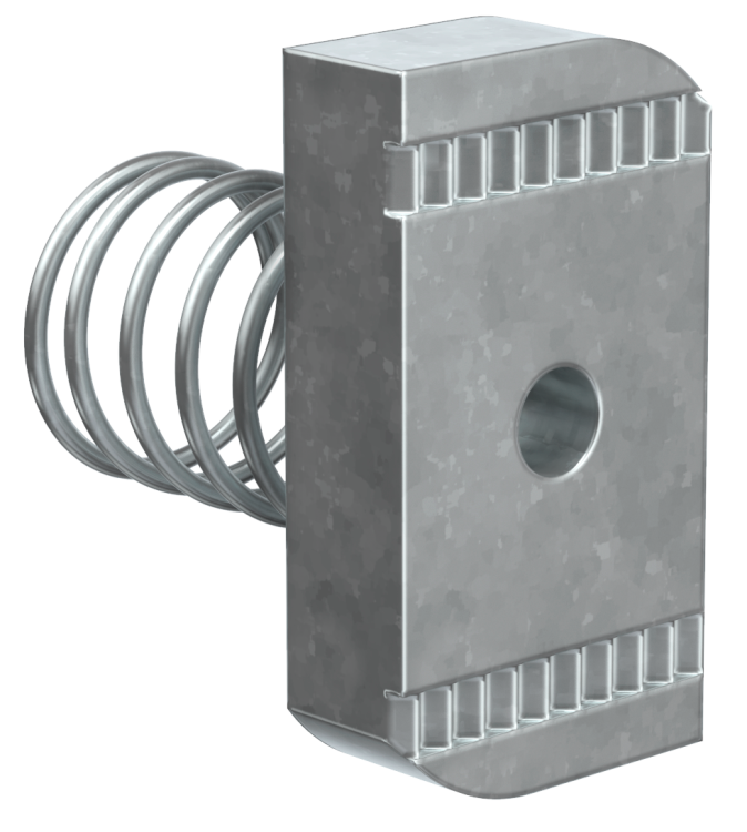 Гайка канальная с пружиной М6х40 используется исключительно для соединений в STRUT-системах - металлических каркасных конструкциях, применяемых в промышленной автоматизации, энергетике и телекоммуникациях. Она позволяет закрепить кабельные лотки, трубопроводы, оборудование к профильным консолям без необходимости постоянного подтягивания. Подходит для систем с профилем сечения 41×21 мм.