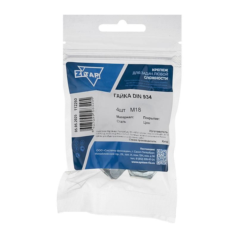 | Гайка шестигранная М18 DIN 934 оцинк. (уп.4шт) Tech-Krep/Zitar 112250 | 13.03.2026 | Под заказ | 89,99 ₽ | уп. 4 шт. | от 13 дней |