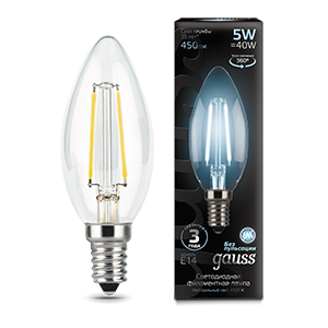 Лампа светодиодная филаментная 5 Вт 450 лм 4100К свеча нейтральный белый E14 220В прозрачная колба от GAUSS сочетает внешний вид классической лампы накаливания с эффективностью современного LED-освещения. Подходит для замены традиционных ламп в открытых светильниках, люстрах и декоративных решениях.