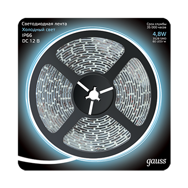 Лента светодиодная LED 2835/60-SMD 4,8 Вт/м 210 Лм/м 6500К холодный IP66 12 В DC 8 мм (блистер 5 м) Black Gauss - 311000305