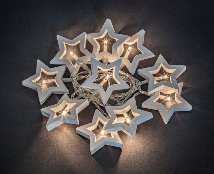 - Количество световых точек: 10 - каждая точка - деревянная звездочка с LED-элементом внутри