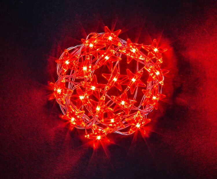 - Гирлянда светодиодная красные звёздочки 2.3 м NGF-DM003-20R-2AA - идеальный вариант для одноразового или сезонного использования, но не для круглогодичного декора