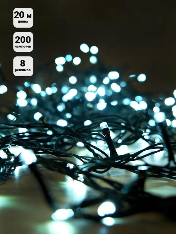 Гирлянда светодиодная 12м 120 светодиодов белый 8 режимов подключается напрямую к обычной розетке 220 В. Для установки используйте крючки, двусторонний скотч или специальные клипсы - провод легко гнётся и фиксируется на любой поверхности. Не допускается соединение нескольких гирлянд последовательно - это может вызвать перегрузку цепи и выход из строя контроллера.