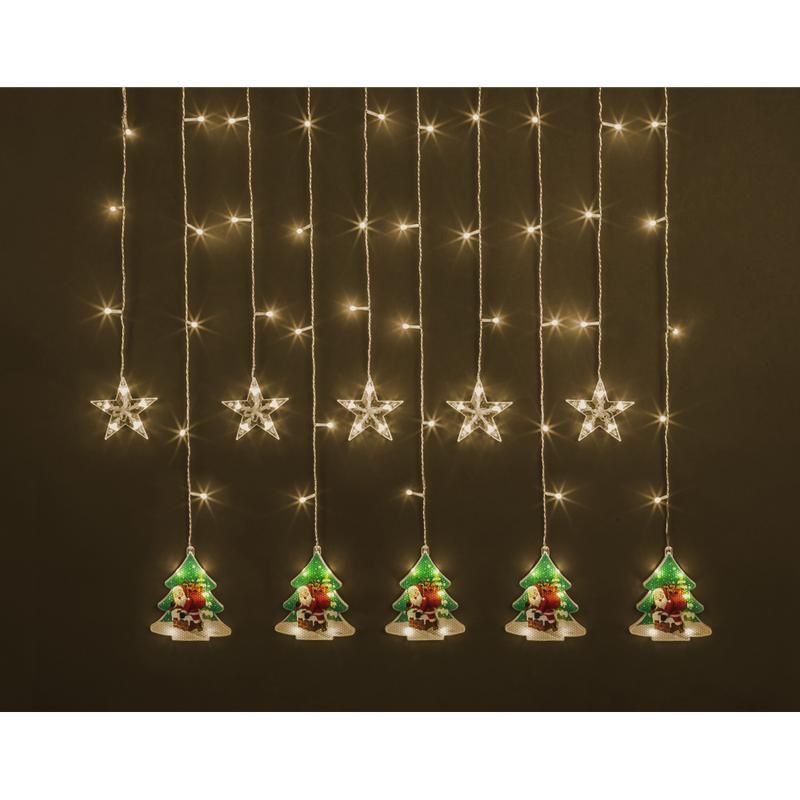 - Тип светильника: светодиодная бахрома с формой звёзд и ёлок