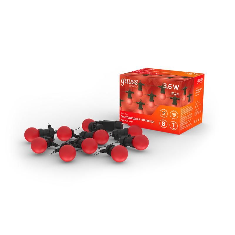 Гирлянда светодиодная "Белт Лайт" серия Holiday,10 ламп, 7,7 м, IP44, красный, 1/6 | HL064 Gauss