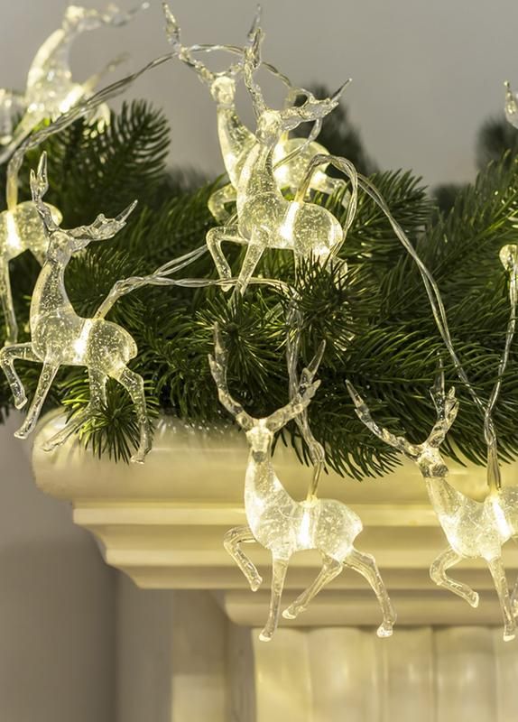 Гирлянда светодиодная Олени большие 7х4х1см 10LED теплый белый акрил прозрачный от КОСМОС (арт. koc_gir-b115) - интерьерная декоративная подсветка с 10 фигурами оленей, работающая от батареек. Подходит для создания уютной атмосферы в доме во время новогодних и рождественских праздников.