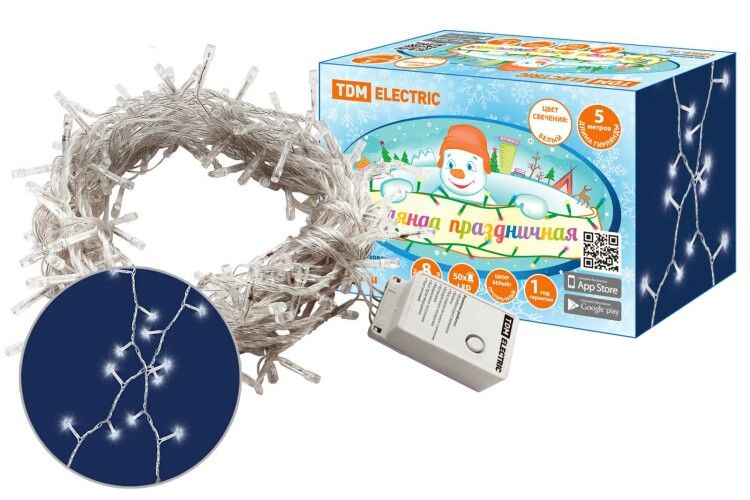 Гирлянда светодиодная СГ50Б5, белая, 5м, 8 режимов, 250 В, | SQ0361-0038 TDM ELECTRIC
