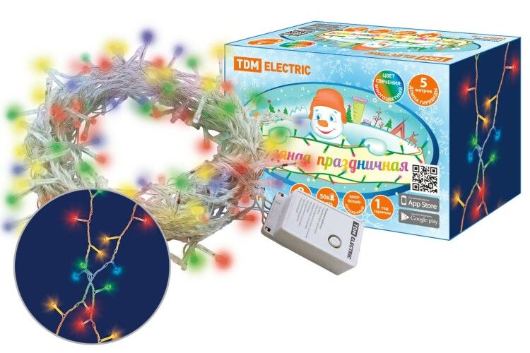 Гирлянда светодиодная СГ50M5 от TDM ELECTRIC - это готовое решение для мягкого цветного освещения внутри помещений. С 50 светодиодами на 5 метрах и 8 динамическими режимами она легко создаёт праздничную атмосферу без сложного монтажа.