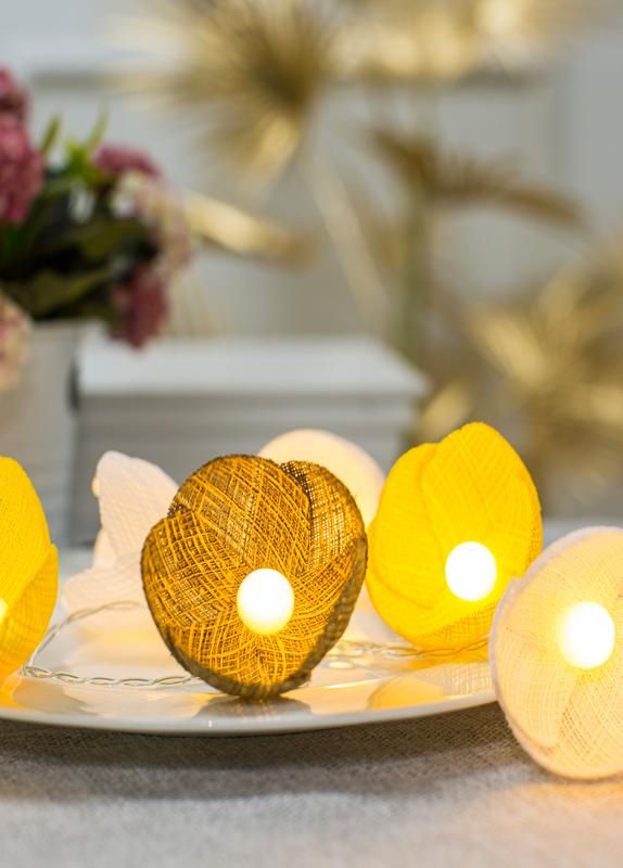 Гирлянда светодиодная цветы желтая гамма 10 светодиодов ткань теплый белый 1.8+0.3 метра от бренда КОСМОС, артикул koc_gir-b110 - декоративное освещение для создания мягкого, уютного света внутри помещений. Подходит для украшения интерьера, фотозон и выставочных композиций.