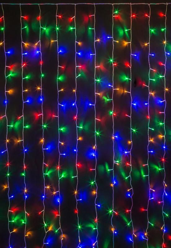 Гирлянда светодиодная занавес 1.5х1.2м 192LED RGBY IP20 TR имеет разъём на конце, позволяющий последовательно соединять до 5–10 таких же моделей (зависит от нагрузки на источник питания). Подключение осуществляется через стандартную бытовую розетку 220 В. Для управления цветом необходим внешний RGB-контроллер (не входит в комплект). Крепление выполняется с помощью крючков, ленты, скотча или специальных креплений - провод достаточно гибкий, чтобы принимать нужную форму.