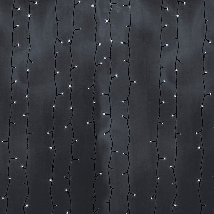 Гирлянда светодиодная "Светодиодный Дождь" от Neon-Night - это световая завеса из 20 вертикальных нитей на 2-метровой шине, предназначенная для декорирования фасадов, террас и интерьеров. Модель 235-165 обеспечивает равномерное белое свечение, защищена от пыли и брызг воды (IP65), и позволяет соединять несколько единиц в одну большую конструкцию.
