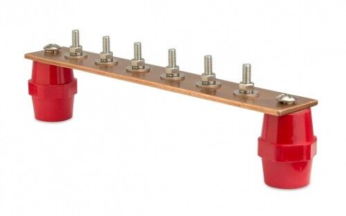 Заземляющая шина главная с изоляторами DKC (ДКС) артикул ne2006 предназначена для надёжного объединения всех заземляющих и нулевых проводников в распределительном устройстве. Шина выполнена из меди, оснащена шестью точками подключения и изолирующими опорами - обеспечивает безопасную и долговечную работу в условиях повышенной влажности и механических нагрузок.