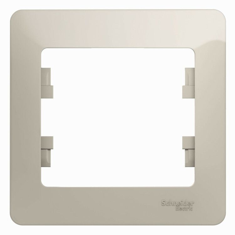 Рамка 1-постовая молочная SE совместима со всеми стандартными механизмами серии GLOSSA и другими изделиями с типовой посадкой 45×45 мм. Монтаж осуществляется через безвинтовое зажимное крепление - достаточно вставить рамку в подготовленную нишу и защёлкнуть её фиксаторами. Крепление надёжное, не требует инструментов. Особенность: рамка рассчитана исключительно на скрытый монтаж в стену; она **не подходит** для установки в кабель-каналы или поверхностные коробки.