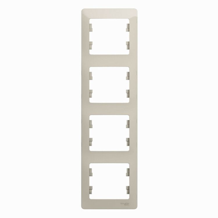 Рамка 4-постовая вертикальная молочного цвета от Systeme Electric (артикул gsl000908) - элемент декора и фиксации для четырёх однопостовых устройств в интерьере. Подходит для скрытой установки в стену, обеспечивает эстетичный вид и надёжную фиксацию модулей без нарушения дизайна.