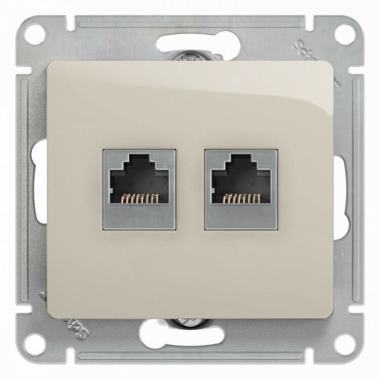 Механизм розетки 2-м Glossa RJ11+RJ45 кат.5е молочн. SchE GSL000985 APC