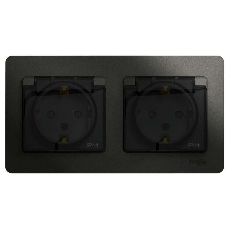 Розетка Systeme Electric серии Glossa (артикул gsl000747) - двойная силовая розетка с заземлением и защитными шторками, предназначенная для надёжного подключения бытовых приборов в условиях повышенной влажности. Антрацитовый корпус и степень защиты IP44 делают её подходящей для установки на кухне, в ванной и других помещениях с риском брызг.