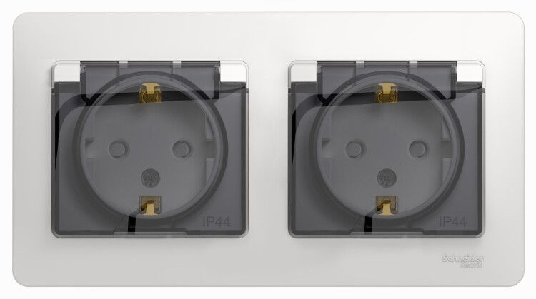 Розетка 2-м СП 2мод. Glossa 16А IP44 с заземл. защ. шторки в сборе бел. SE GSL000147 APC
