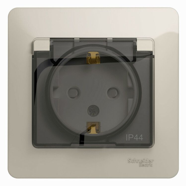Розетка 1-м Glossa 16А 250В с защ. крышкой шторки заземл. в сборе IP44 молоч. SchE GSL000948 APC