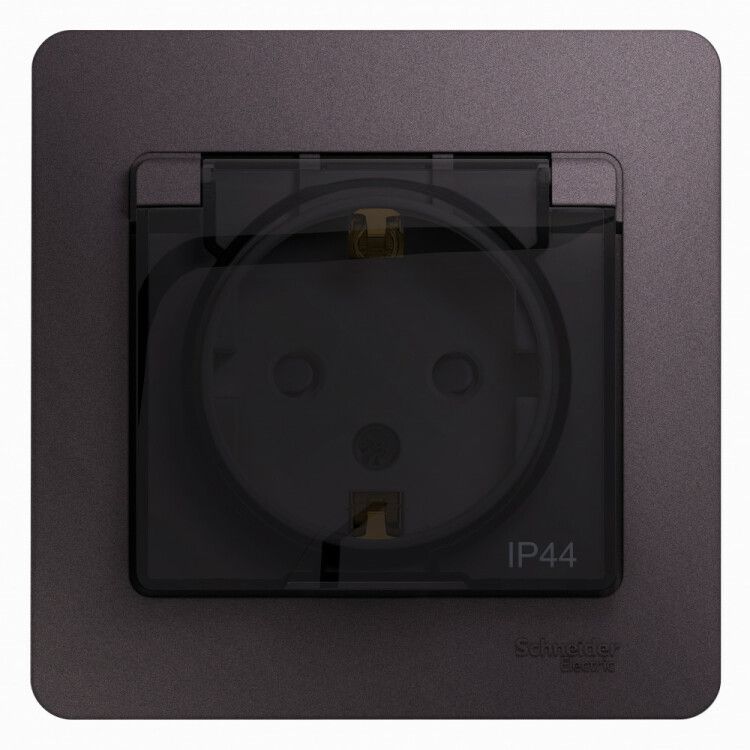 Розетка 1-м СП Glossa 16А IP44 250В с заземл. защ. шторки крышкой в сборе сиренев. туман SE GSL001448 APC