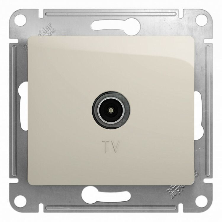 Розетка телевизионная антенная Systeme Electric gsl000993 совместима с любыми стандартными подрозетниками глубиной 40–45 мм. Крепится через два винта к рамке системы GLOSSA. Для монтажа необходим коаксиальный кабель с F-разъёмом - он заводится в заднюю часть механизма и затягивается контактным винтом. Накладка легко снимается для обслуживания. Не требует специальных инструментов - достаточно отвертки и плоскогубцев для подготовки кабеля.
