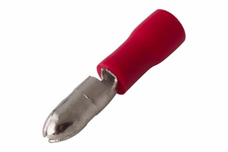 Разъем штекерный изолированный штекер 4 мм 0.5–1.5 мм2 (РШи-п 1.5-4, РШИп 1,25-4) красный от REXANT рассчитан на использование с гнездами того же типа - 4 мм. Для монтажа необходимы пресс-клещи, обеспечивающие равномерный обжим через изоляцию: