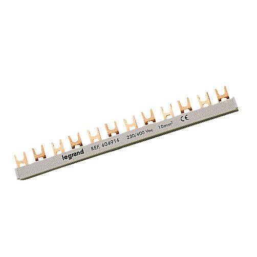 Шина гребенчатая распределительная 2 полюса 56 модулей 16 кв. мм вилка от Legrand Euro - это надёжное решение для равномерного распределения тока между автоматическими выключателями в щитовой. Артикул 404914 подходит для профессиональной сборки распределительных щитов с высокой плотностью установки.