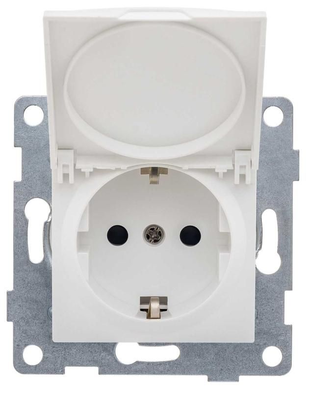 Розетка однопостовая Ugra с/з с з/ш и крышкой, механизм, 16А, 250В, белый - С11Р91-001 GUSI