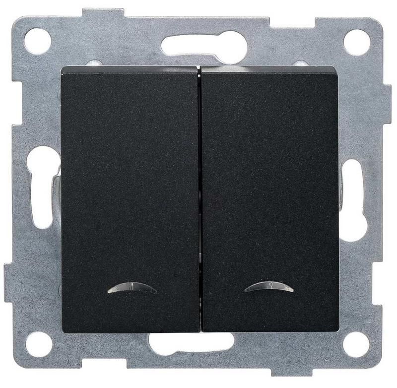 Выключатель двухклавишный Ugra инд, маханизм, 10А, 250В, графит - С11В28-010 GUSI