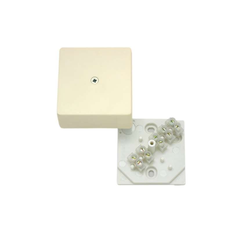 Коробка распределительная 60x60x30мм с клеммником слоновая кость IP20 используется для соединения и ответвления электрических проводов в условиях сухих помещений. Применяется там, где требуется доступ к точкам соединения - например, при монтаже освещения, розеток, автоматических выключателей или в системах управления. Удобна для работы внутри пластиковых кабель-каналов или на открытых поверхностях - стенах, потолках, перегородках.