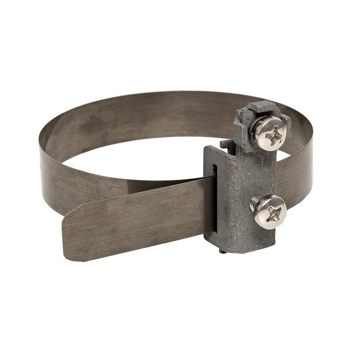 - При монтаже на трубы с толщиной стенки более 4 мм - дополнительно просверлите отверстие и закрепите болтом для усиления контакта