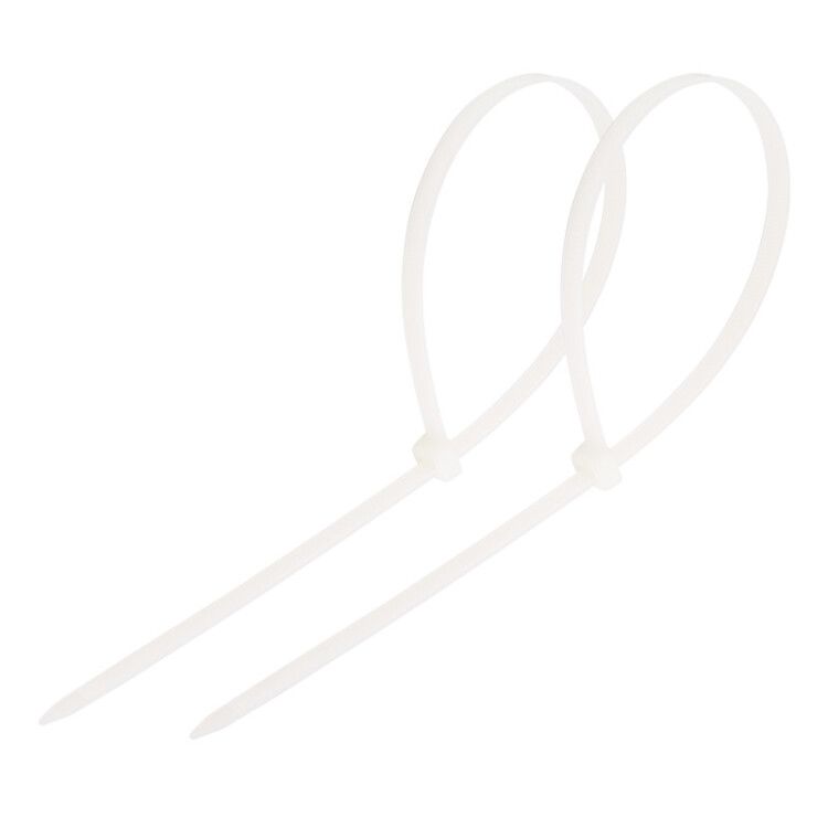 Хомут-стяжка кабельная нейлоновая 350 x 4,8 мм, белая, упаковка 100 шт используется для фиксации и группировки кабелей, проводов, шлангов и труб. Применяется в электрооборудовании, автоматизации, транспорте, промышленном оборудовании, системах освещения и бытовой технике. Подходит для внутренней и защищённой наружной установки.