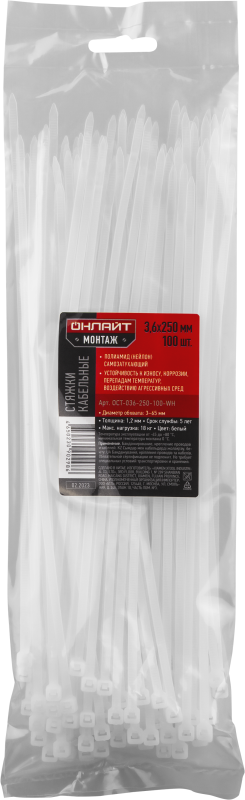| Хомут 90 298 OCT-036-250-100-WH (уп.100шт) ОНЛАЙТ 90298 | 26.02.2026 | 9 уп. | 111,98 ₽ | уп. 100 шт. | от 12 дней |