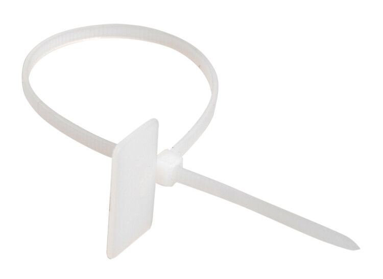 Хомут кабельный с площадкой ХП1 3,0х150 белый с табличкой 25х15 используется для сборки и упорядочивания проводов и кабелей на панелях, щитах, станках, конвейерах и других объектах. Отходящая маркировочная площадка позволяет нанести информацию о цепи, номере или назначении прямо на хомут - без необходимости использовать отдельные бирки. Подходит для работы внутри помещений и в закрытых каналах, где требуется четкая и долговечная маркировка.