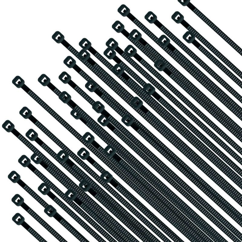 Хомут кабельный стяжка нейлон черный 4.8х250 (уп. 100 шт.) V02-1B используется для сборки и упорядочивания кабелей, проводов, трубок и шлангов. Подходит для монтажа в распределительных щитах, на станках, конвейерах, в автомобилях, телекоммуникационных шкафах и других местах, где требуется компактная и прочная фиксация. Также применяется для крепления гибких гофротруб к стенам или рамам.