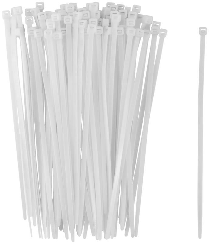 Хомуты нейлоновые для проводов, белые 100 шт., 4,8х200 мм - 60374