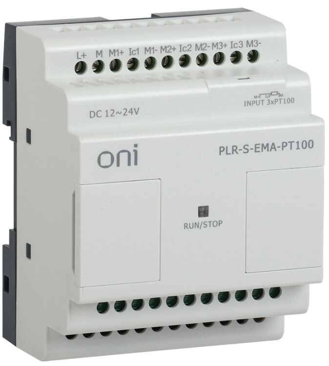 Логическое реле PLR-S. 3 RTD серии ONI - модуль расширения для трёх датчиков сопротивления PT100, предназначенный для работы совместно с контроллерами серии ONI PLR-S. Обеспечивает точное измерение температуры через винтовые клеммы и монтируется на DIN-рейку.