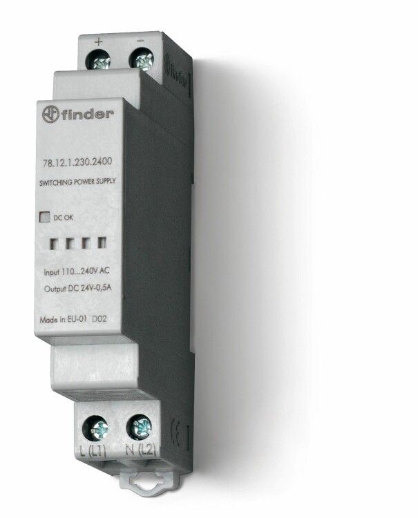 Импульсный источник питания; вход 110...240В AC; выход 12В DC, 12Вт; модульный, ширина 17.5мм; степень защиты IP20 | 781212301200 Finder 78.12.1.230.1200
