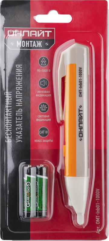 Индикатор бесконтактный 1000 В OMT-Inb01-1000V от бренда ОНЛАЙТ предназначен для быстрого выявления наличия напряжения в проводах и контактах без физического контакта с токоведущими частями. Артикул 90083 подходит для работ на объектах с высокой плотностью электрооборудования, где важна скорость и безопасность диагностики.