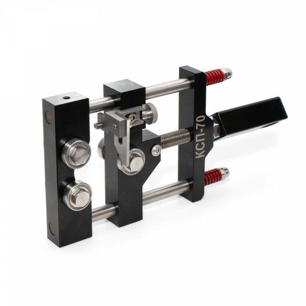 Инструмент для разделки кабеля из сшитого полиэтилена КСП-70 (комплект) серия ПРОФИ совместим только с кабелями, имеющими полупроводящий экран на основе сшитого полиэтилена. Для работы требуется фиксация кабеля в зажиме - шесть прижимных роликов обеспечивают устойчивую посадку без проскальзывания. Монтаж не требует электро- или пневматического питания. Инструмент работает вручную: вращение рукоятки активирует равномерный прижим и одновременно запускает механизм реза. Перед первым использованием необходимо отрегулировать глубину реза под конкретный диаметр кабеля.