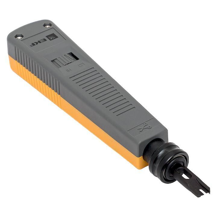 Инструмент для заделки витой пары с ножом EKF TRC-S55 - надёжный ручной инструмент для профессионального обжима и обрезки жил витой пары при монтаже сетевых соединений на IDC-контактах кросс- и патч-панелей, модулей Keystone и информационных розеток.
