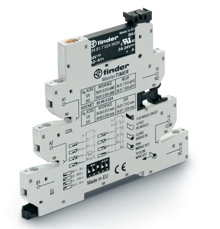 Интерфейсные модули реле MasterTimer: с таймером, Винтовые клеммы, Мультифункциональные: AI, DI, GI, SW, 1 выход 2A-24VDC, Твердотельные реле, 12VAC/DC - 398000129024 FINDER 39.80.0.012.9024