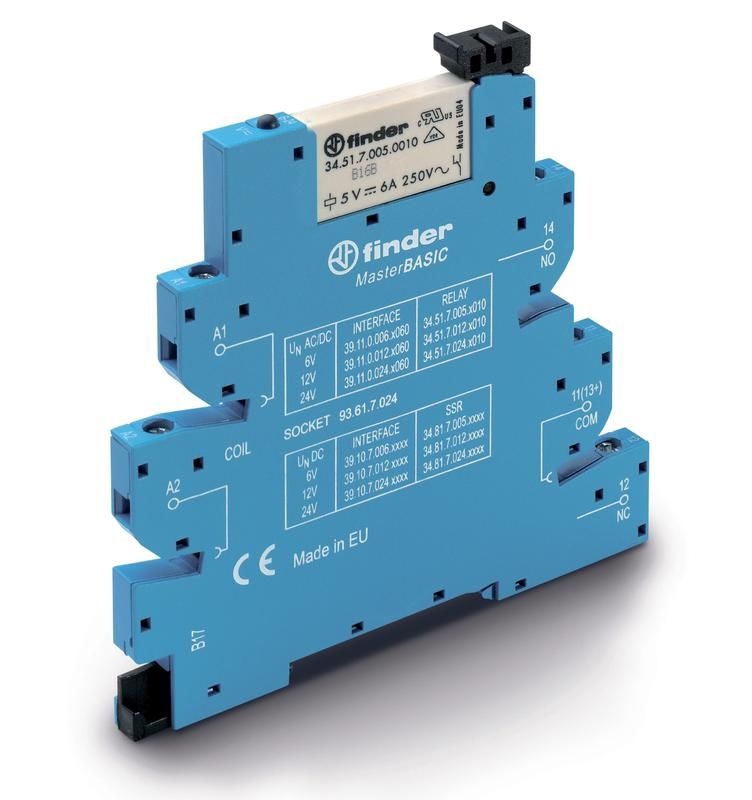 Интерфейсные модули реле MasterBASIC: Электромех. реле, Винтовые клеммы, Контакты AgNi, 1 группа конт.6A, 6VAC/DC - 391100060060 FINDER 39.11.0.006.0060