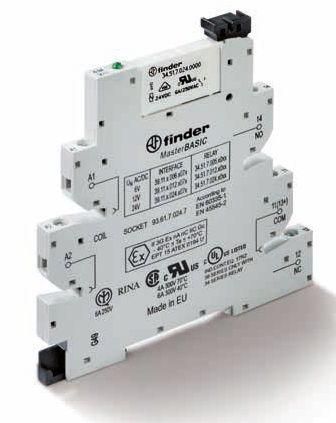 Интерфейсный модуль, электромеханическое реле, серия MasterBASIC, 1CO 6A, контакты AgNi, питание 6В AC/DC, категория защиты IP20, винтовые клеммы, версия EMR ATEX - 391100060073 FINDER 39.11.0.006.0073