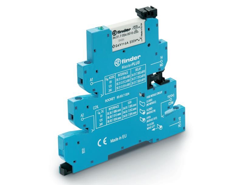 Интерфейсные модули реле MasterPLUS: Электромех. реле, Винтовые клеммы, Контакты AgNi, 1 группа конт.6A, 60VAC/DC - 393100600060 FINDER 39.31.0.060.0060