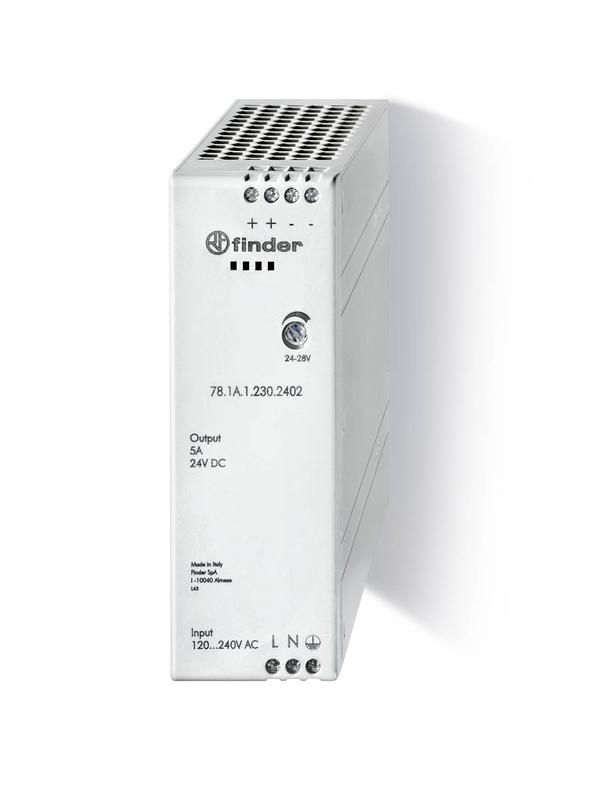 Источник питания импульсный, вход 120...240В AC/220В DC, выход 24В 120Вт, компактный, степень защиты IP20 - 78.1A.1.230.2402 FINDER 781A12302402