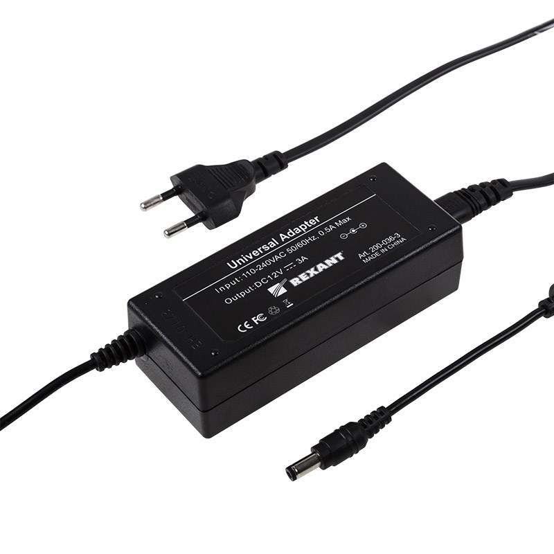 Источник питания 110-220V AC/12V DC, 3А, 36W с DC разъемом подключения 5.5*2.1, без влагозащиты (IP23) | 200-036-3 REXANT MEET