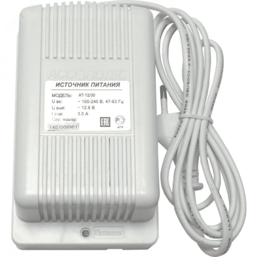 Источник вторичного электропитания AT-12/50 цвет белый - компактный стабилизированный блок питания от AccordTec, предназначенный для обеспечения надёжного постоянного тока 12,6 В на устройства с нагрузкой до 5 А. Подходит для автоматизации, сигнализаций, промышленной электроники и других систем, требующих устойчивого питания.
