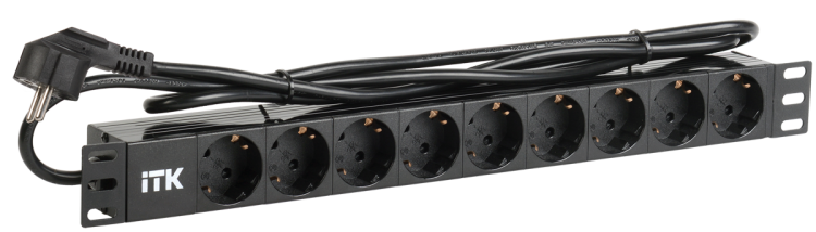 ITK ph22-9d1 совместим с любыми 19-дюймовыми стойками и шкафами. Крепится с помощью встроенных кронштейнов, которые можно перемещать вдоль алюминиевого профиля - это позволяет точно регулировать положение устройства внутри стойки. Установка занимает несколько минут: достаточно зафиксировать кронштейны на направляющих и вставить блок розеток. Шнур с вилкой уже установлен - дополнительная проводка не требуется.