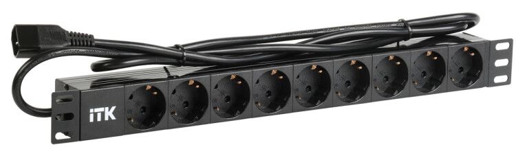 Блок розеток 9 мест PDU (немец. станд.) DIN 49440 алюм. профиль 1U шнур 2м; вилка IEC 320 C14; черн. ITK PH22-9D2 IEK