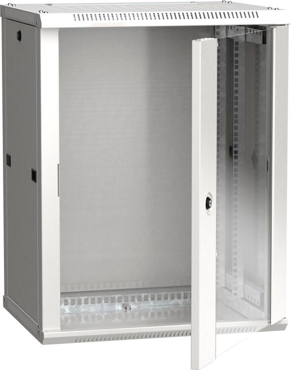 Шкаф настенный 19 дюйм 15U 600x450мм стеклянная дверь RAL7035 ITK - компактный корпус из стали с прозрачной дверью для установки телекоммуникационного и сетевого оборудования в помещениях с контролируемым микроклиматом. Артикул lwr3-15u64-gf относится к серии LINEA W и рассчитан на монтаж в ограниченном пространстве, где важны доступность и эстетика.